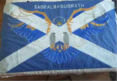 This is the Wallace Banner - made for the Wallace Society. It is my replicated version, the original being lost. The banner is paraded at Stirling Bridge. |