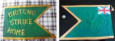 John Daniel, an English volunteer serving in Balmerino's troop, recorded that at Elgin it was given a curious fine Standard with the motto Britons Strike Home. British cavalry standard 's of this period are poorly documented comparing them with surviving examples that most had a union flag in the Canton and regimental motto or device on the flag. John Daniel saved the flag from being recaptured in the aftermath of CULLODEN but his riding jacket and flag were stolen by two deserters from the Irish Piquet. |